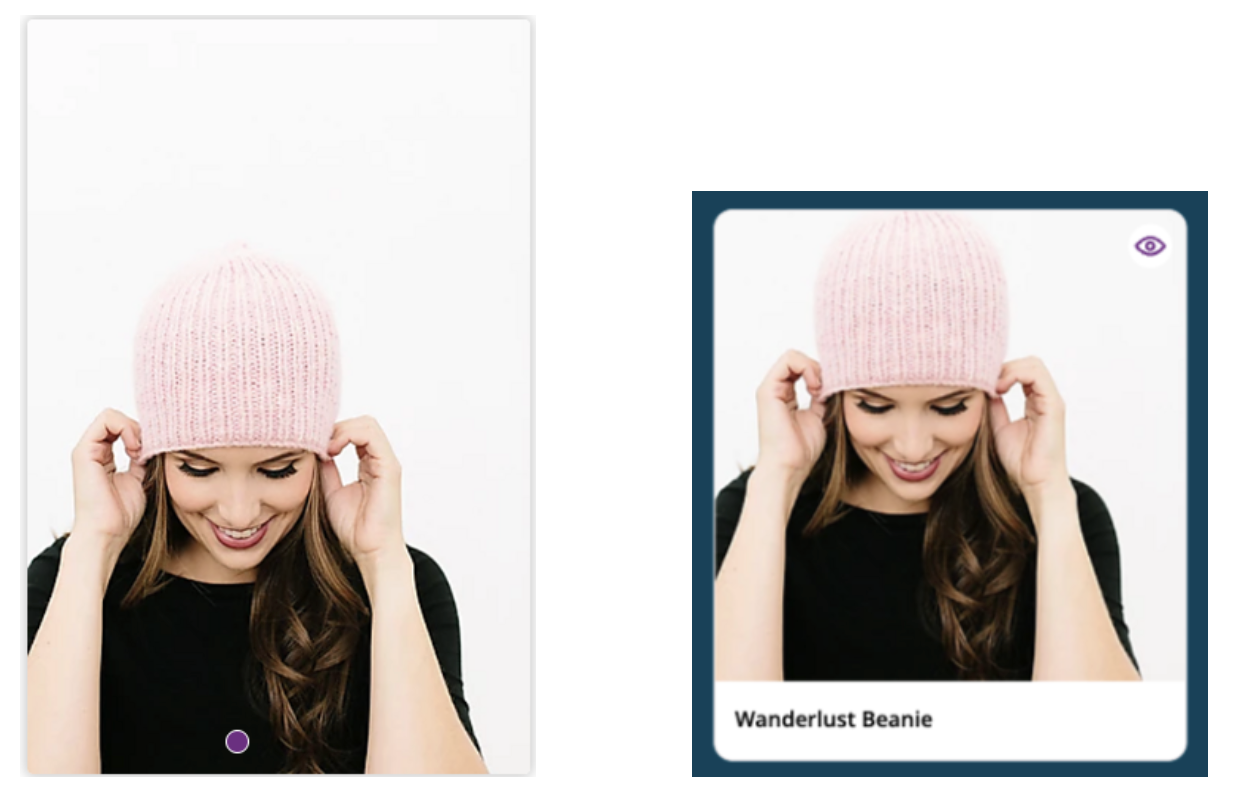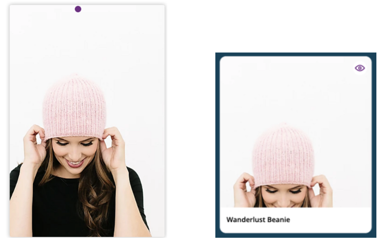 Here, the focal point is positioned at the center-bottom of the beanie (left). See how the image renders on the DLP (right).